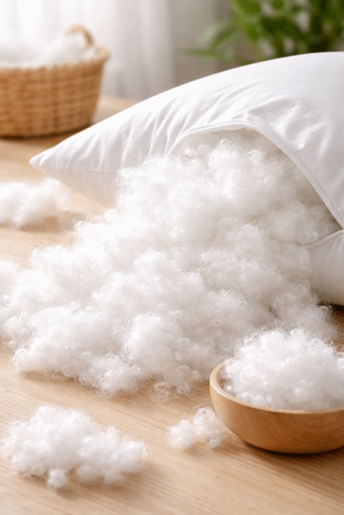 Hollow Silicon Fiber, crafted from 100% virgin/recycle polyester and treated with a siliconized finish. This soft, bouncy fiber is designed for premium cushioning and filling applications. The hollow core structure provides better loft, airflow, and insulation, while the silicon coating gives it a silky smooth feel, perfect for pillows, cushions, quilts, jackets, and soft toys.